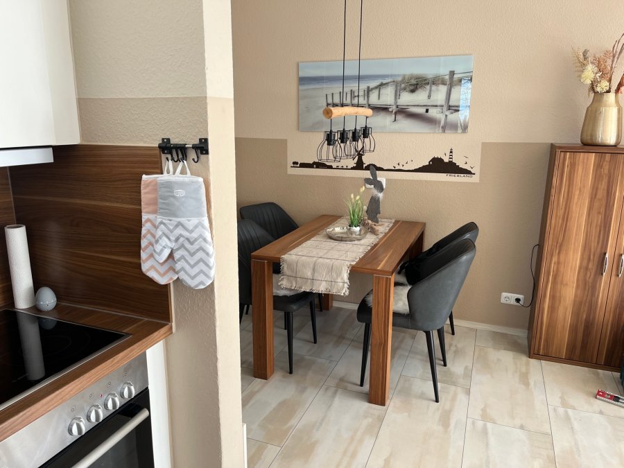 Unsere ca. 50 m² große Nichtraucher Ferienwohnung im Nordseeheilbad Horumersiel-Schillig liegt im ruhigen Wohngebiet "Friesenhörn", von hier aus sind der Ortskern von Horumersiel und die wunderschönen Strände von Schillig schnell erreichbar. Die moderne Ferienwohnung im Obergeschoss besteht aus einem Schlafzimmer, großem Wohnraum mit 2 Schlafgelegenheiten, Ledercouch, Flachbild-TV, Essplatz für 4 Personen und moderner Einbauküche, sie wurde im Jahr 2012 komplett renoviert/modernisiert. Sämtliche Fenster wurden durch 3-fach verglaste Wärme/Lärmschutzfenster der neuesten Generation ersetzt und lassen sich durch Jalousien verdunkeln (zum Teil elektrisch). Wir haben ihr Feriendomizil mit sehr viel Liebe zum Detail eingerichtet, daher sind wir uns sicher, dass Sie sich in der "Kleinen-Auster" sehr wohl fühlen werden.